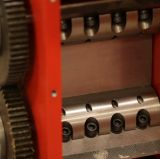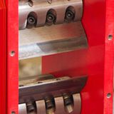 Конструкция рабочих валов увеличивает рабочий момент, который передается от привода к ножам измельчителя. И в отличии от квадратного вала, нагрузка воспринимается не ножом, а самим телом вала в следствии чего, срок службы режущего элемента значительно дольше.